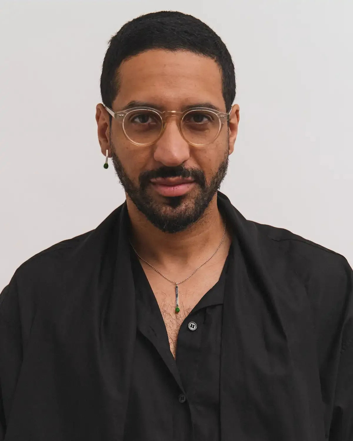 6.674 Earring in Short Gold-Plated Silver Matchstick Shape with Green Enamel